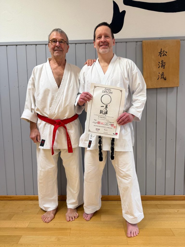 Eine hochrangige Prüfungskommission unter Leitung von Peter Trapski (9. Dan), Rainer Katteluhn (9. Dan) und Detlef Tolksdorf (8. Dan) prüfte René Peisert (Prof. Dr.) zum 7. Dan. Das Schwerpunktthema seiner Prüfung waren Selbstverteidigungsprinzipien aus der Kata in der Interpretation der Stilrichtung Shoto Ryu. Zuvor hatte René ein aufwendiges Zulassungsverfahren beim Deutschen Karate Verband zu dieser hohen Dan-Prüfung durchlaufen müssen. Herzlichen Glückwunsch!