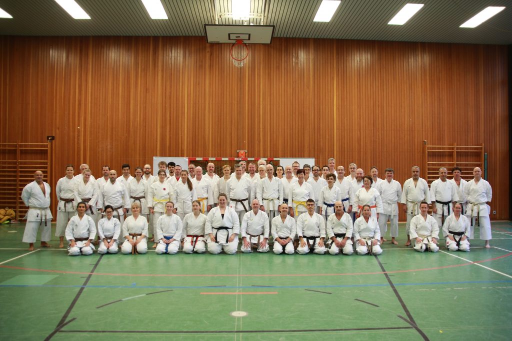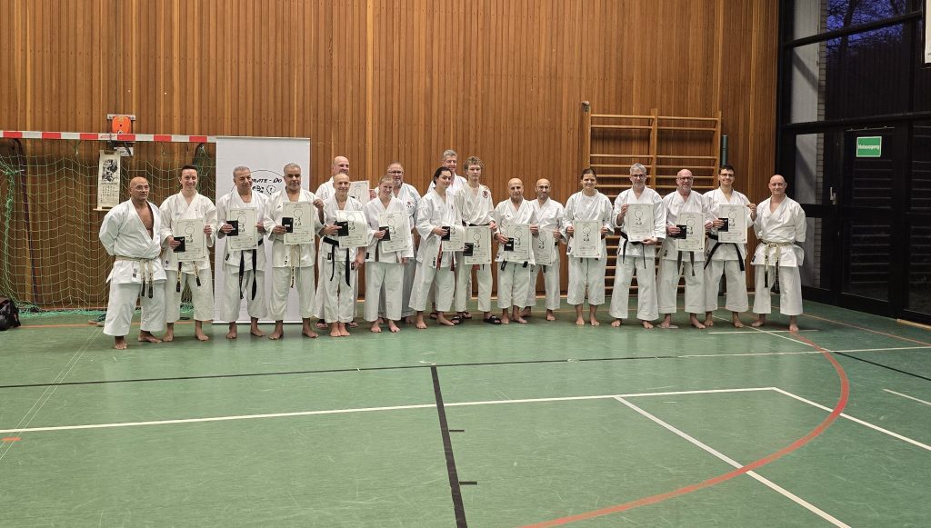 Der lange und intensive Tag begann mit einem Karate-Lehrgang. In zwei parallelen Trainingseinheiten, jeweils unterteilt in Unter- und Oberstufe, lernten die 57 Teilnehmenden neue Aspekte ihres Sports. Während der Schwerpunkt der Oberstufe auf der Kata Jion lag, wurde den Karateka der Unterstufe Grundlagentraining vermittelt. Im Anschluss des Lehrgangs stellten sich 28 Prüflinge erfolgreich der nächsten Kyu-Graduierung. Danach schlossen sich die Dan-Prüfungen an. Insgesamt konnten 16 Prüflinge ihren angestrebten Dan-Grad in Empfang nehmen. Aus dem Verein Karate-Do Dormagen stellten sich gleich sechs Mitglieder dieser Herausforderung. Die Prüfung zum 1. Dan haben bestanden: Antonius Brodda, Katharina Förster, Mathias Naumann, Guido Steinke. Die Prüfung zum 2. Dan haben bestanden: Sascha Hesch, Lukas Paklinski.