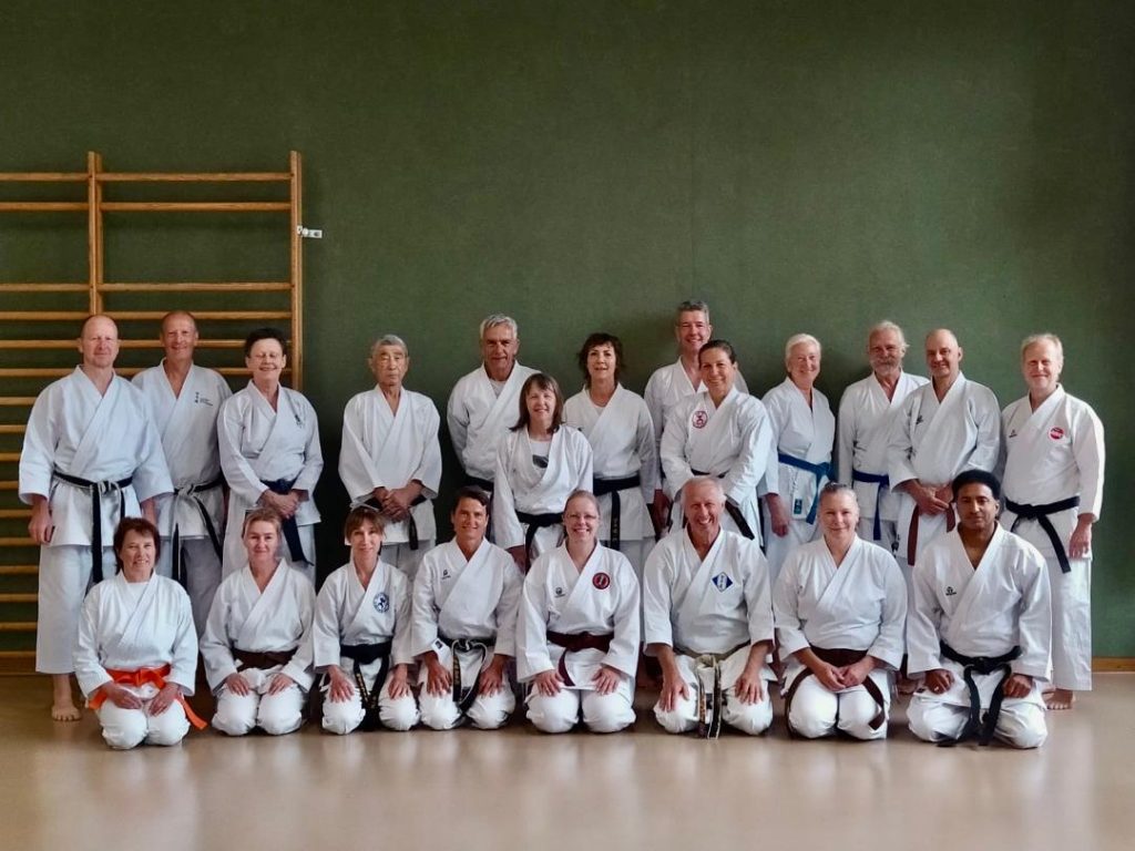 In diesem Jahr fand, nun schon zum fünften Mal, die beliebte und mit 20 Teilnehmenden erneut ausgebuchte 3-Tages Fortbildung unter der Leitung von Shuzo Imai, Thomas Behnke und Armin Gudat in der Sportschule Hachen statt. Der 80-jährige Shuzo Imai, der kürzlich mit der DKV-Ehrennadel für sein Karate-Lebenswerk geehrt wurde und den 9. Dan trägt, beeindruckte mit seiner über 60-jährigen Karate- und Budo-Erfahrung in Theorie und Praxis.
