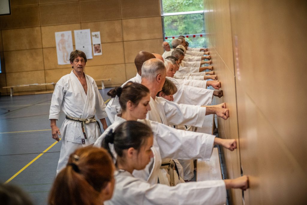 Schnell – und vor allem gesund für die Gelenke sollen die Techniken ausgeführt werden, auch darauf zielte der Lehrgang ab. Werner sagte, er habe selbst in seiner langen Karate-Geschichte erfahren, manche Anforderungen in den Karate-Ständen könnten je nach individueller Anatomie ungesund sein. Zum Beispiel der Kiba-Dachi, der vorschriftsmäßig ausgeführt, langfristig Probleme in den Sprunggelenken bedeuten könne. Shiko-Dachi sei, so Werner, für ihn der bessere Stand. Gesünderes Karate sei möglich. Einen Großteil seiner Übungseinheit nahm eine fortgeschrittene Interpretation der Grundtechniken ein: Die Ausholbewegung einer Blocktechnik kann schon die eigentliche Abwehr sein, die Blocktechnik wiederum kann Angriff werden.